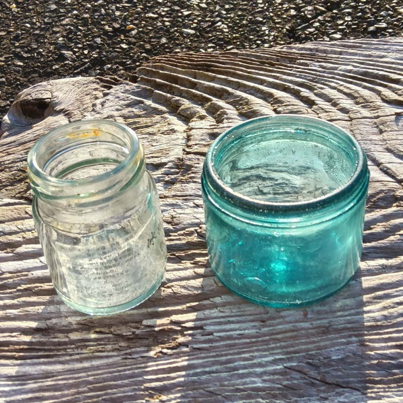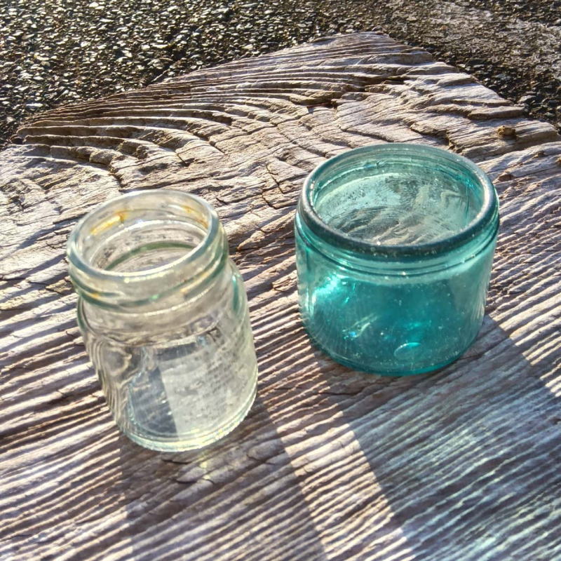 | 「春一番」吹き荒れた渚で見つけた小さな小さな瓶です。これは可愛い。 コレクションに追加。 印鑑をならべて撮影しました。 |