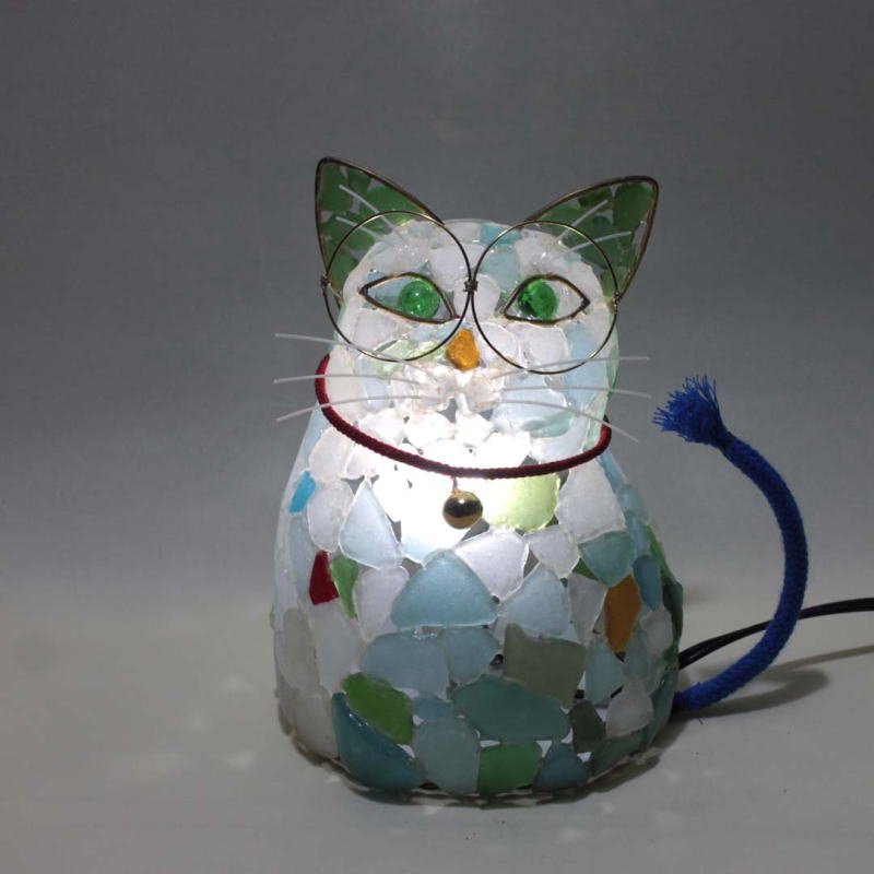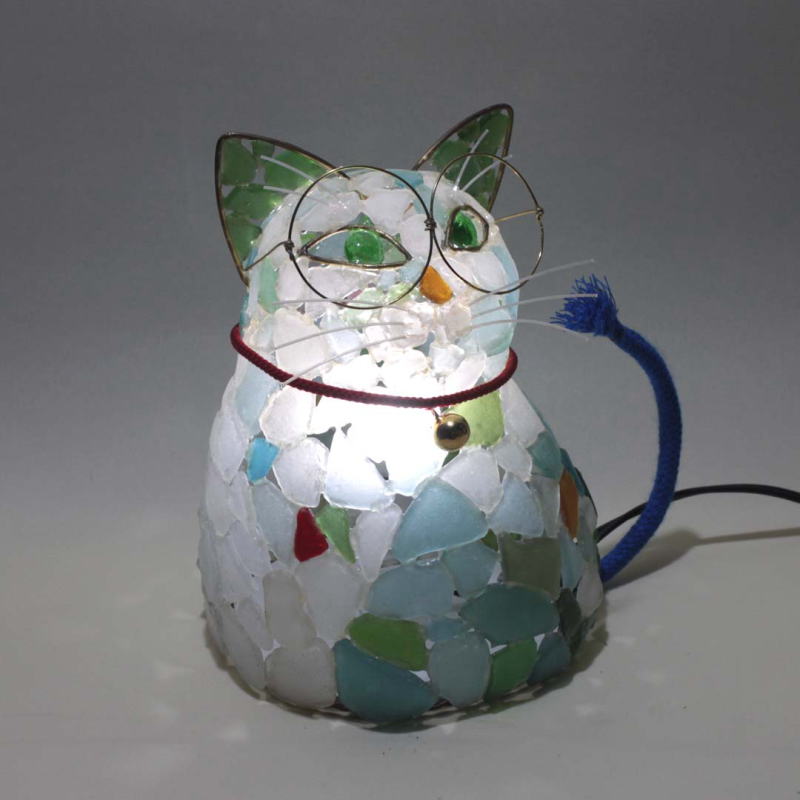 44年前にシーグラスのランプを発想、数多くの作品を作っています。 |