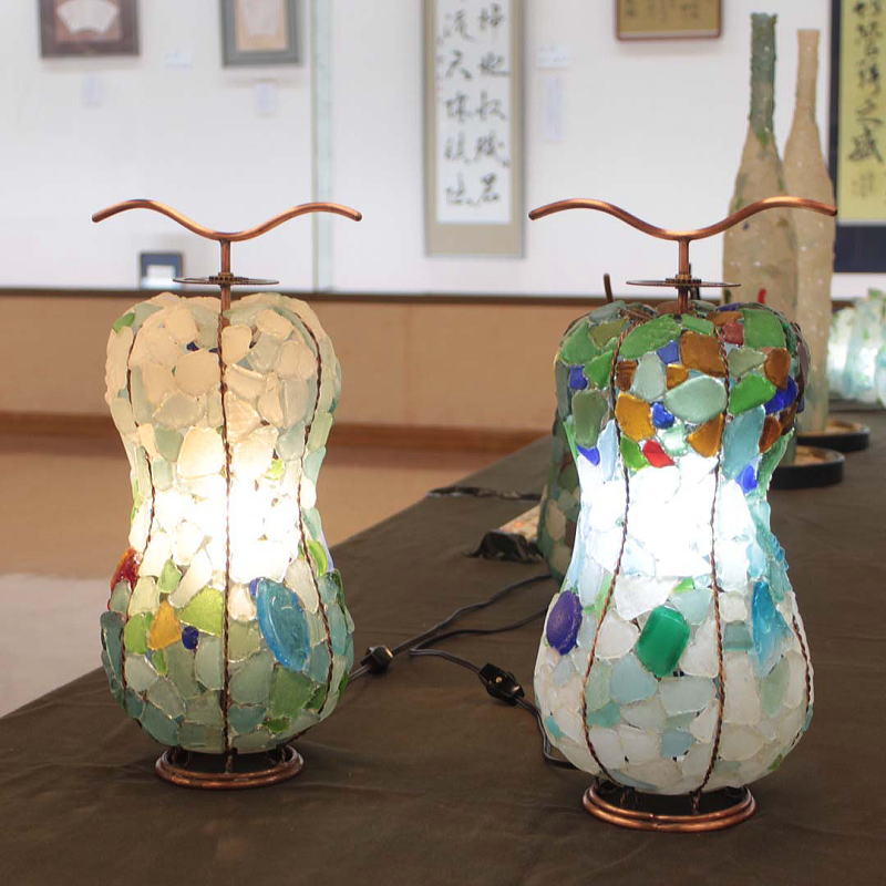 ![]() 43年前にシーグラスのランプを発想、数多くの作品を作っています。 |